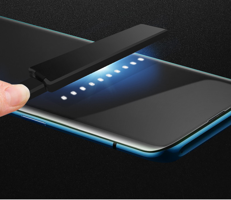 Kính cường lực UV chuyên dùng cho các dòng màn hình cong , công nghệ dán bằng keo nước khô nhanh chóng , sử dụng đèn tia UV chỉ trong vòng 10s nhanh chóng, làm khô giúp cho kính cường lực dễ dàng, bám chắc chắn không bị bong tróc, không tạo ra các bọt khí mất thẩm mỹ và gây khó chịu cho người dùng. – Bề mặt kính cường lực bóng, chống xước, chống bám mồ hôi tay rất tốt, trong suốt đến 99.99%, đảm bảo độ nhạy màn hình nên bạn hoàn toàn yên tâm sự dụng